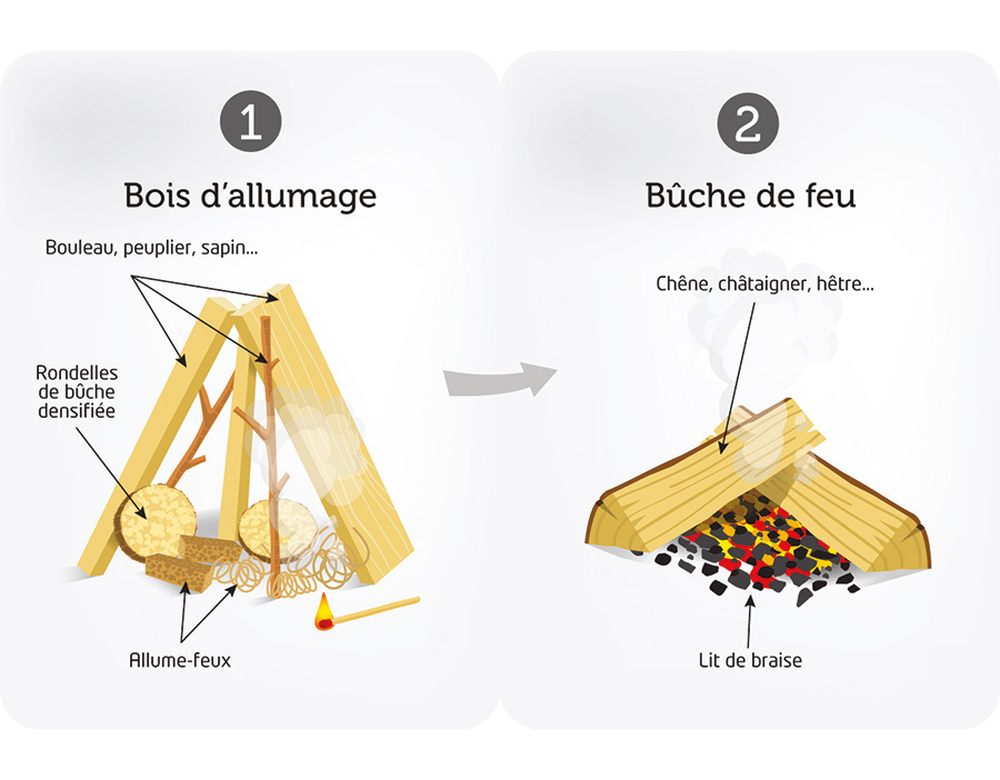 Accompagnés d’allume-feux écologiques ainsi que d’écorces ou de feuillus tendres pour l’allumage, votre feu sera un succès !